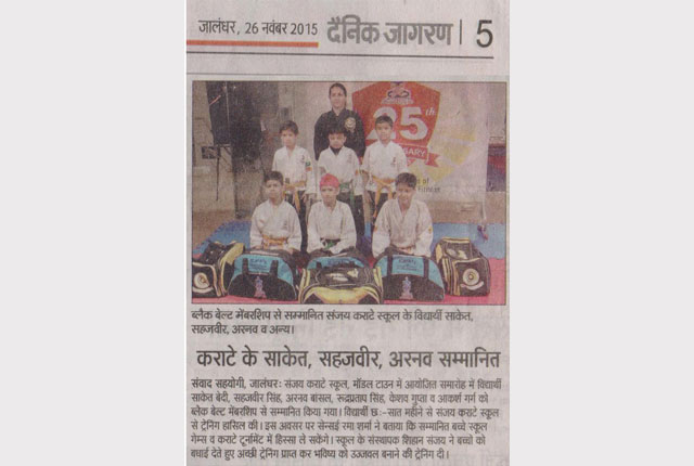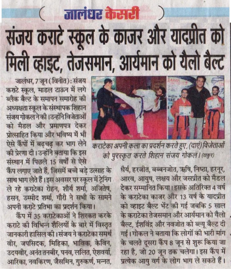 Child to Champion's "Sanjay Karate School", Jalandhar, has been training kids of all ages in karate for the past 32 years. Karatekas are trained under well qualified karate instructors in all the branches. They are made to undergo strenuous training and then are made to earn each belt after passing the necessary belt grading exam. A monthly belt grading test and its award ceremony was held on 11 January 2020 in model town branch. A total of 34 Karatekas were awarded belts and different awards as per their performance. It was matter of great pride for the Karatekas that their belts were presented by Kyoshi Sanjay Gokal, MD and founder of "Sanjay Karate School". He asked the students to work harder to reach their next belt level as it is going to be more tougher to earn. Kyoshi reiterated the need of self defence in present time to live life free of fear and full of self-confidence.